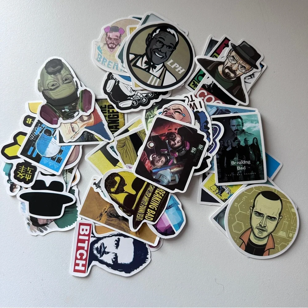 - Breaking Bad-themed stickers for anything and everything! Laptops, water bottles, binders, Coolers, etc