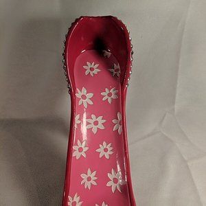 Breast Cancer Awareness Pink Floral Ribbon Stiletto High Heel Bottle Holder Rest Wine