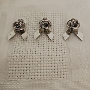 Breast Cancer Awareness Ribbion Pins Set Of 3 Silver & Blue