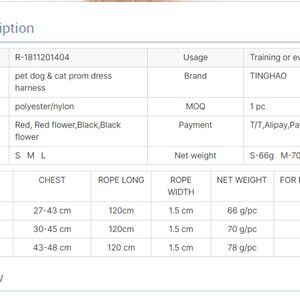 Brand new cute dog harness that is breathable and perfect for summer. Easy to wash polyester/nylon material and adjustable.