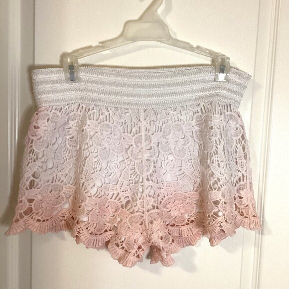 Breeze Over Women's Crochet Shorts Size M Ombre Lined Scalloped Hem Boho Hippie
