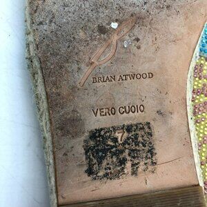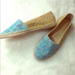 Brian Atwood Hartwell rhinestone blue tan flat espadrilles women’s size 7