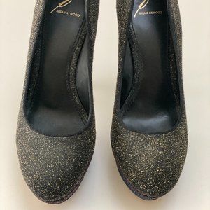 Black, blue and red sparkly heels from Brian Atwood. US 9.