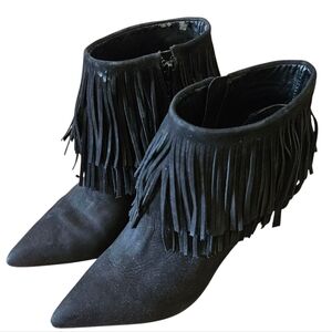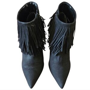 Brian Atwood Nova Suede Leather Fringe Ankle Women's Booties Size 7 Black.