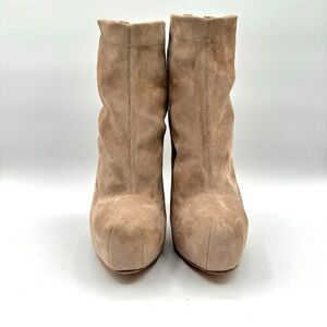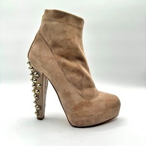 Brian Atwood Studded Heels Booties,Nude Suede with Bold Studded Heel, Size 37