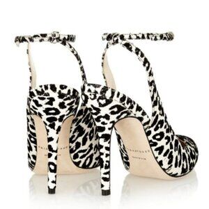 Ayers snakeskin uppers with black, velour leopard print throughout. Made in Italy by Brian Atwood. Very sexy shoes!