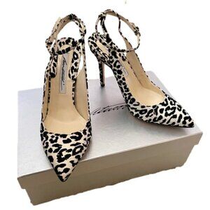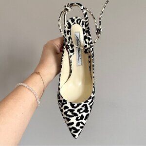 Brian Atwood White Lilith Snakeskin Leather Leopard Print Slingback Pumps - 5US