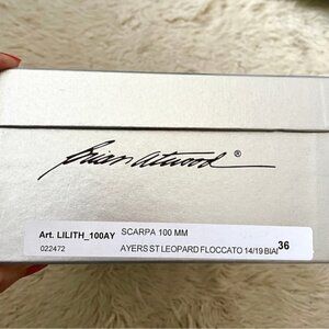 Ayers snakeskin uppers with black, velour leopard print throughout. Made in Italy by Brian Atwood. Very sexy shoes!