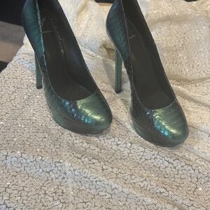 Barely worn, beautiful dark croc like finish : very high heel With platform