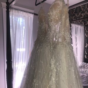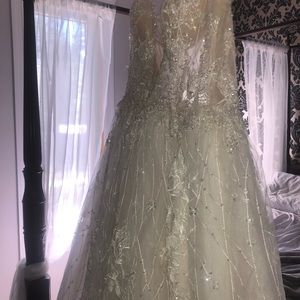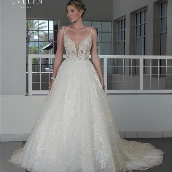 Evelyn Designer Bridal Gown. This dress sparkles so beautifully in person. Can send videos upon request.