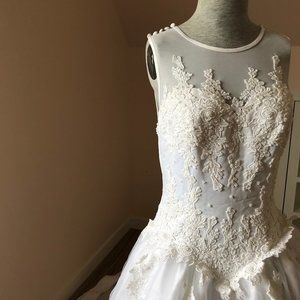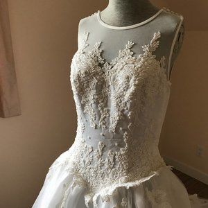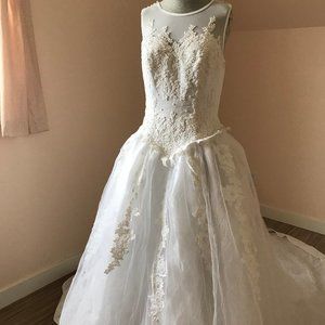 Bridal Embellished Mesh Satin Bodice Wedding Gown Long Tulle Train (Never worn)