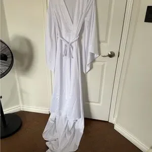 Gorgeous kimono style long train bridal robe. Wore for getting ready on the big day and made for some stunning shots!