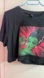 Stylish black crop top featuring a vibrant graphic design. Perfect for casual outings and adding a pop of color to your wardrobe.