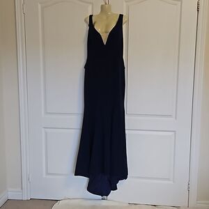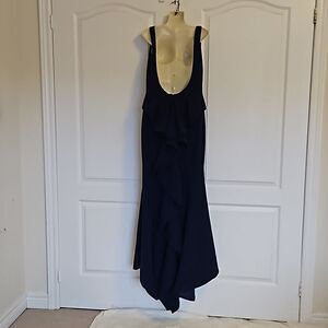 Brides Women's Mermaid High-Low Draped Low Back Maxi Dress Size 8 Navy Blue