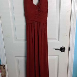 Floor length bridesmaid dress, size A10, only worn one day. Altered/hemmed for 5’6” with 1.5” heels. Dry cleaned.