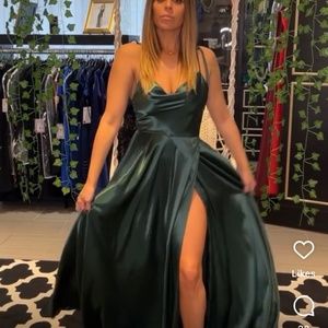 Beautiful cows neck bridesmaid down with adjustable tie straps.