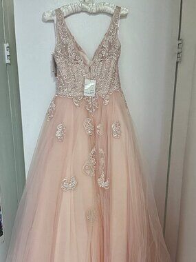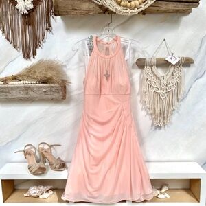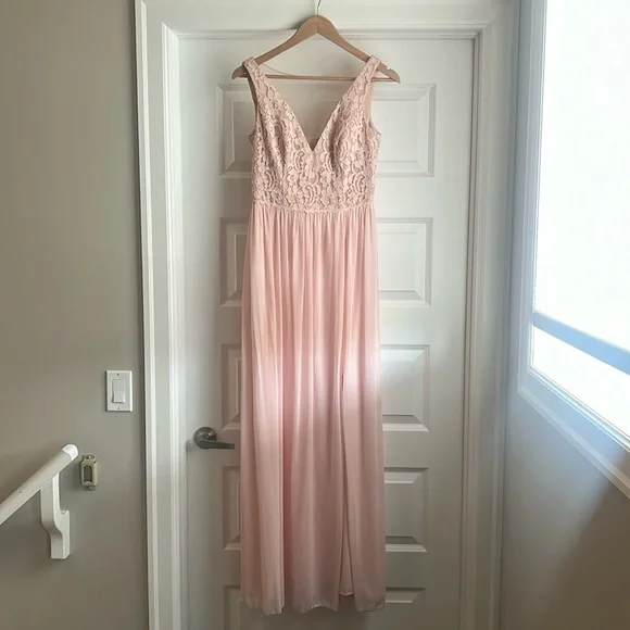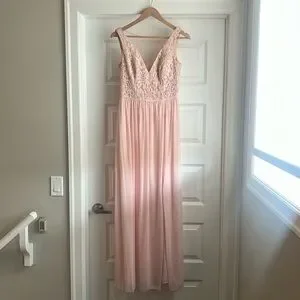 David's bridal. Soft pink. Lace top and flowy bottom. Slit up leg. Size 6. Only worn for one wedding. Perfect condition