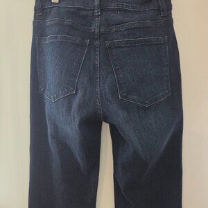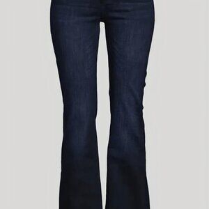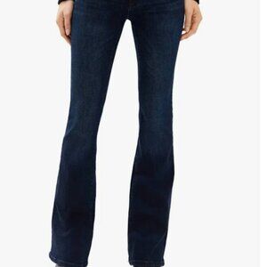 These figure flattering jeans have been worn twice and are in fantastic condition. Crafted in soft denim with the comfort of stretch, these high rise jeans have a '70s-inspired look with a modern sophisticated feel. The boot cut leg and deep dark wash create elongated lean legs.