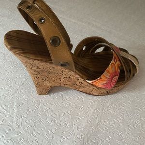 Bridget Shuster Cork Wedges Sandals. Size 10