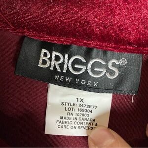 Briggs New York Women's Size 1X Red Velvet Button Up Shirt Vamp Goth Rock