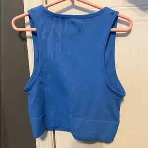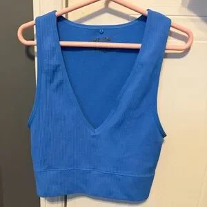 Bright Blue Ribbed V-Neck Crop Tank