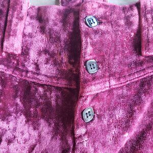 Bright Burgundy Pink Velour Velvet Vintage High Waist Hand Made Button Fly Pants