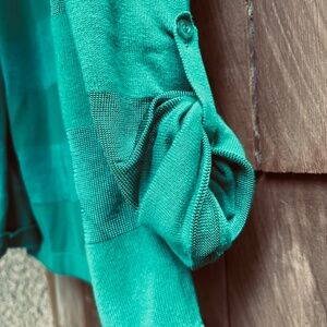Bright Green Sweater with textured stripes in 💯 cotton with roll-up sleeves