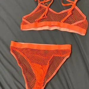 Bright Orange Fishnet Set