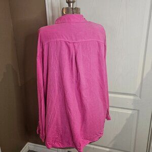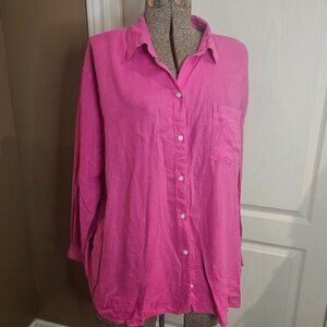 Bright Pink Boyfriend Style Linen Blend Shirt sz L