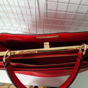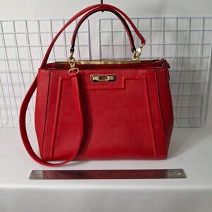 Bright Red Aldo Top Handle Structured Purse, Vegan Leather, Goldtone Hardware