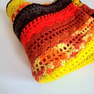 Bright colors handmade bohemian crochet throw blanket Afghan.