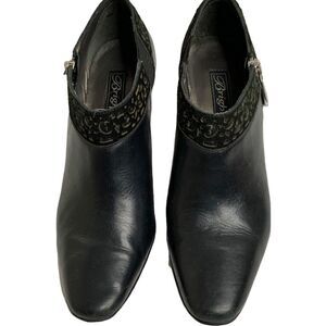 Brighton Black Genuine Leather Ankle Booties with Silver Hardware and Suede Trim