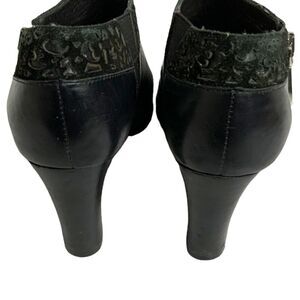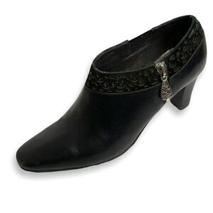 Brighton Black Genuine Leather Ankle Booties with Silver Hardware and Suede Trim