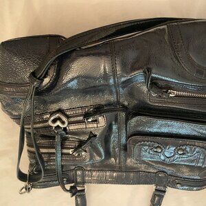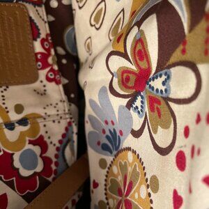 Thanks for your interest. The bag measures 13" in width, 11" in height, and features a magnetic closure.