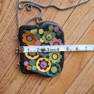 Brighton Brown Coin Purse Kiss Lock Leather Flower Appliqué Chain Strap