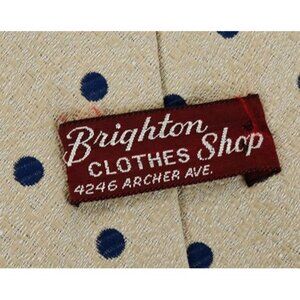 Brighton Clothes Shop Chicago Vintage Tie Beige Blue Polka Dot Necktie 1970s 80s
