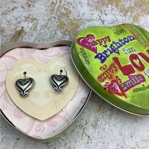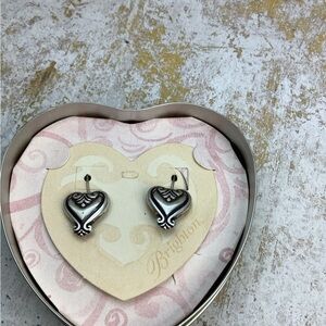 Charming heart-shaped earrings by Brighton. Crafted in silver with intricate detailing. Ideal for adding elegance. They are lever back and 1 inch from the top of the hook to the bottom of the heart. They come in the Brighton box.