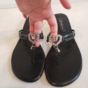 Brighton Luxe Crystal Embellished Women's Black Leather Kitten Heel Sandals 8.5