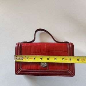 Brighton Red Leather Top Woven Handle Croc Embossed Hand Carry Clutch