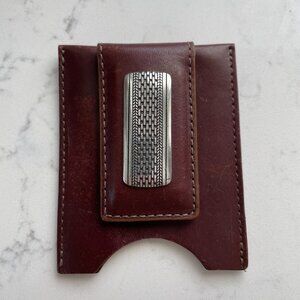 Brighton Salina Leather Business/Credit Card + Magnetic Money Clip Brown Silver