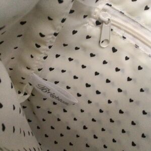 Made of canvas material with a black and off-white cotton lining featuring a Brighton signature heart pattern.