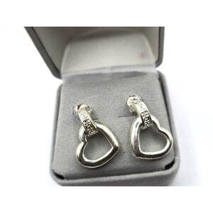 Brighton sterling silver heart dangle earrings featuring polished open hearts and pave-accented tops. Stamped 925, Thailand, and Brighton’s “B in a circle” logo. Lightweight and elegant — from Brighton’s rare sterling silver collection. Comes with a soft grey velvet presentation box (not Brighton branded), perfect for gifting. just under an inch dangle