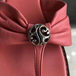 Brighton Thong Style Slip On Leather Sandals w Signature Silver Plated Metal Embellishment in Pink