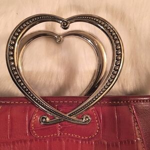 Brighton Vintage Corazon Mini Leather Heart Handbag - Red With Heart silver handles.