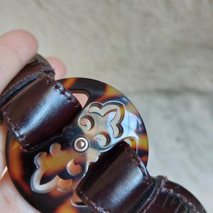 Brighton Women's Black Leather Tortoise Buckle Belt small/30" length