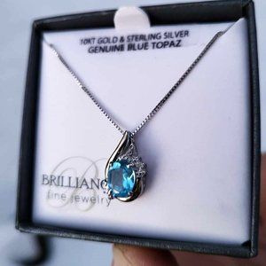 Brilliance Genuine 10kt gold & Sterling Silver Blue Topaz Diamond Necklace