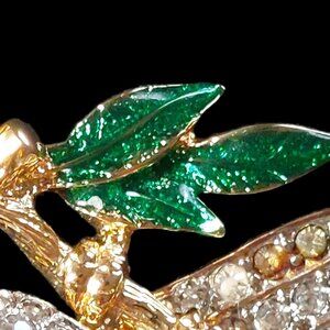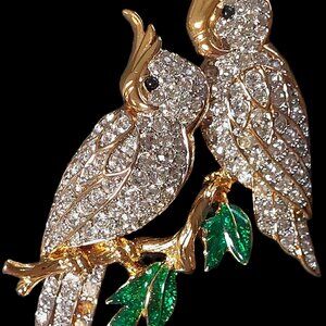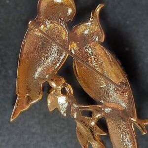 Brilliant Rhinestone Parrot pin broach with an intricate golden setting