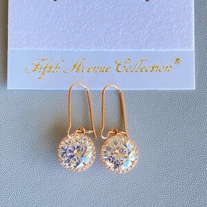 NWT Canadian Brand Fifth Avenue Collection Brilliant Dangle Round Cubic Zirconia with Halo CZ, Rhodium plated Rose Gold Tone Earrings, elongated sterling silver hooks, hypoallergenic, Free from lead, nickel & cadmium. Comes in FAC drawstring giftable pouch.