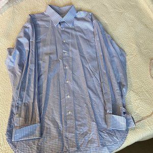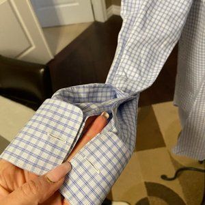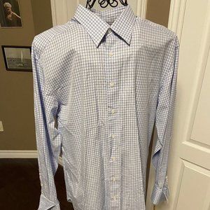 Brioni Blue Check Men's Shirt with French Cuffs in Size 44/17.5 EUC