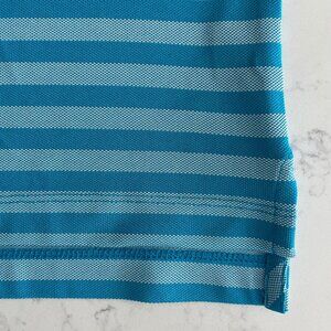 Britches Short Slv 3 Button Pull On Striped Polyester Blend Polo Shirt in Teal Blue NWT